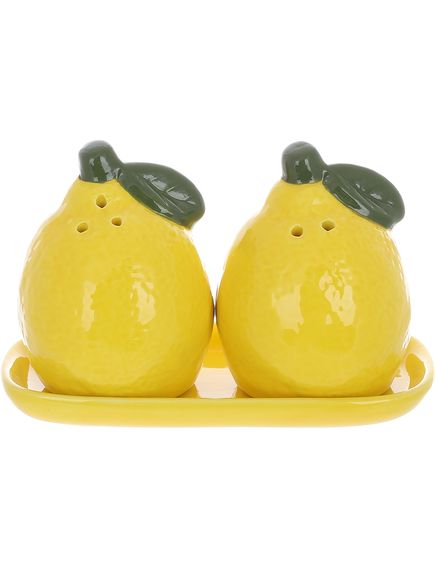 Набір для спецій Lemon: сільничка та перечниця 8 см на керамічній підставці — це стильне і функціональне доповнення для вашої кухні. Унікальний дизайн у формі лимонів надає набору свіжості та яскравості, а керамічна підставка забезпечує зручність зберігання та подачі спецій. Цей набір стане не лише практичним інструментом для використання солі та перцю, а й стильним акцентом на вашому столі або кухонній полиці.