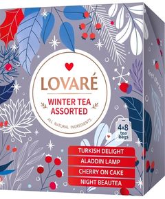 Новорічна колекція чаю Winter Tea Assorted від Lovare 4 види по 8 шт, пакетований чай в індивідуальних конвертах - Cherry on cake, Night beautea, Aladdin lamp, Turkish delight.
