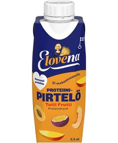 Склад: вівсяна основа (вода, безглютеновий овес 5%), цукор, білок бобів, фруктовий сік з концентрату 2,9% (маракуйя, абрикос), фруктове пюре з концентрату 1,8% (манго, персик), картопляний крохмаль, ріпакова олія, вівсяна клітковина (бета-глюкан), кальцій. Протеїновий коктейль Elovena...