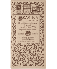 Склад: какао-боби*, необроблений тростинний цукор*, какао-масло*. *З органічного сільського господарства. Цей унікальний темний шоколад Belize 70% витримувався 6 місяців у бочці, начиненій листям тютюну Orient сорту Крумовград. Це перше у світі. Цей шоколад не містить тютюну та...