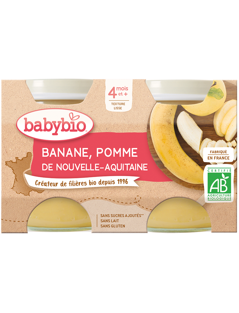 Склад: банани з Еквадору* 49,5%, яблука з Nouvelle-Aquitaine* 49,5%, концентрований лимонний сік з Іспанії*. *Інгредієнти з органічного землеробства.