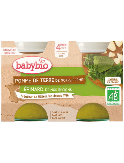 Склад: картопля з французької ферми в Пеї-де-ла-Луар* 38%, вода для приготування їжі, французький шпинат* 23%, сік сицилійського лимона*. * Інгредієнти з органічного землеробства.