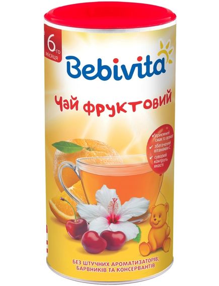 Фруктовий чай Bebivita – це швидкорозчинний чайний напій із фруктів із приємним смаком та ароматом, діє як загальнозміцнювальний та вітамінізуючий засіб, добре втамовує спрагу, покращує апетит. Збагачений вітаміном С.