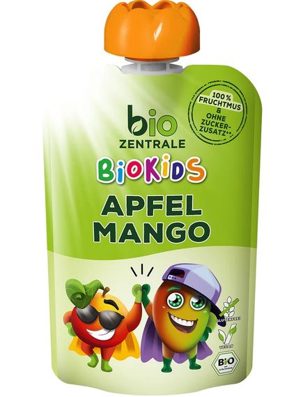 Наше яблучно-мангове фруктове пюре BioKids на 100% складається з фруктів і не містить цукру. Кремова кремова консистенція та фруктовий смак стиглих яблук і екзотичного манго роблять фруктове пюре BioKids у практичній сумці для стискання ідеальним супутником у дорозі. Наше яблучно-мангове фруктове пюре BioKids є природним веганським продуктом, не містить глютену та лактози.