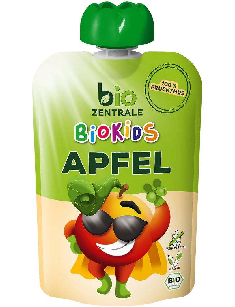 Наше яблучне фруктове пюре BioKids на 100% складається з фруктів і не містить цукру**. Кремова кремова консистенція та фруктовий смак готових до збору яблук роблять фруктове пюре BioKids у практичному пакеті для стискання ідеальним супутником у дорозі. Наше яблучно-фруктове пюре BioKids є природним веганським продуктом, не містить глютену та лактози.