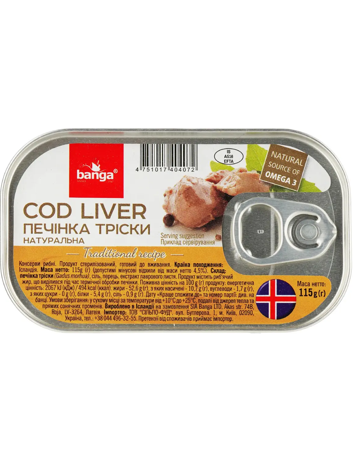 Печінка тріски Banga – це поєднання традиційного смаку та користі, яке зробить ваш стіл більш вишуканим і здоровим.