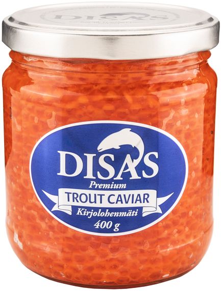 Склад: ікра форелі (країна походження: Фінляндія, Швеція, Данія), сіль 3%, консерванти (E202, E211).