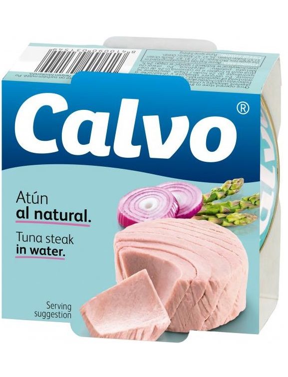 Calvo, Испания / Steak Tuna in Water / традиционная средиземноморская закуска - консервированный тунец в собственном соку / создана на основе отборного филе тунца, воды и соли / обладает мягкой текстурой и чистым натуральным вкусом / продукт идеально подходит для домашнего и профессионального приготовления разнообразных блюд: от легких сэндвичей с тунцом, салатными листьями и поджаренных ломтиков хлеба, до изысканных салатов на основе свежих сезонных овощей и бальзамического уксуса / для правильного и сбалансированного питания - тунец богат на ценные белки и минералы, а также Омега-3 / абсолютно натуральный диетический состав: продукт не содержит консерванты /продукт представляет собой одну индивидуальную баночку - для удобного использования дома или в путешествии / 100 г = 359 ккал / удобный формат для разового использования / 160 г