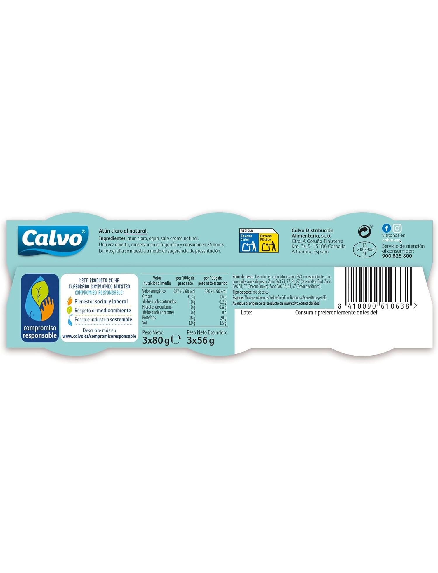 Натуральний світлий тунець Calvo є ідеальним джерелом білків чистого жиру. Ідеально підходить для всіх, хто хоче дотримуватись здорового харчування.