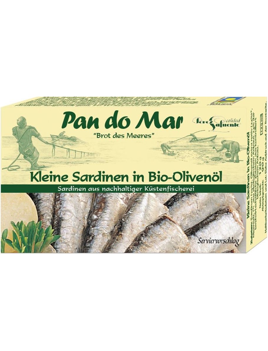 Сардини зі стійких і контрольованих рибальських запасів виловлюються традиційним прибережним промислом у північно-східній Атлантиці, очищаються вручну та консервуються в оливковій олії першого віджиму з сертифікованого іспанського органічного сільського господарства.