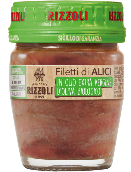Філе анчоусів, виловлене у відкритому морі, збережене в органічній олії першого віджиму, отриманої після першого віджиму оливок, лише за допомогою механічного процесу та без втручання будь-яких процесів чи хімічних речовин.