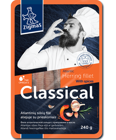 Склад: філе оселедця атлантичного без шкіри 69% (філе оселедця атлантичного (Clupea harengus harengus – РИБА, виловлено на північному сході Атлантичного океану, FАО 27), сіль, декстроза, підсилювач смаку та аромату: E621, регулятори кислотності: E575, E330, E334, консерванти E211, Е202,...