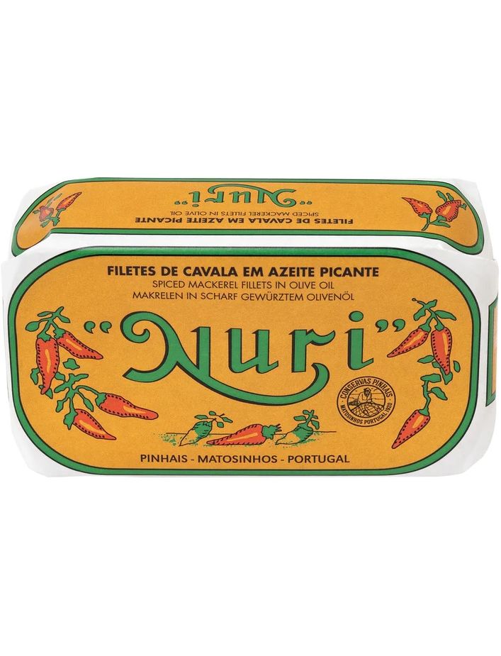 Склад: філе скумбрії (72%), оливкова олія (22%), огірок, чилі (2%), морква, сіль, гвоздика, перець чорний, лавр.