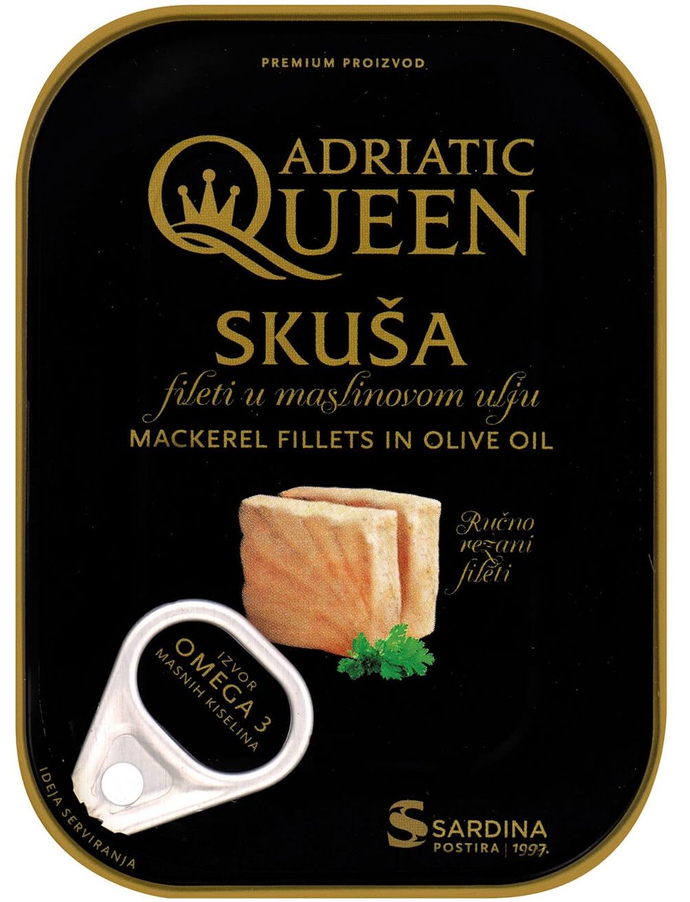 Скумбрия является одним из лучших источников жирных кислот омега-3, а также богата селеном, укрепляющим иммунную систему. Скумбрия Adriatic Queen в оливковом масле содержит скумбрию из Адриатического моря, питательные вещества которой сохраняются за счет добавления оливкового масла.