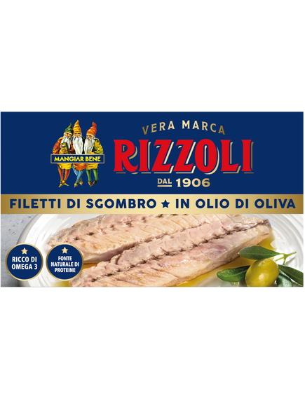 Філе скумбрії Rizzoli в оливковій олії, багате омега-3 і природне джерело білків, є ідеальним інгредієнтом для здорових і смачних рецептів .