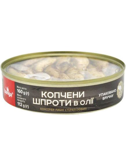 Склад: кілька балтійська копчена (Sprattus sprattus) 70%, рапсова олія 26%, сіль.
