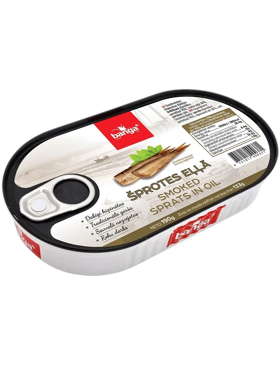 BANGA - один з найвідоміших прибалтійських брендів рибної консервації. Виробництво було засноване ще в 1947 році в містечку Роя, на самому березі Ризької затоки.