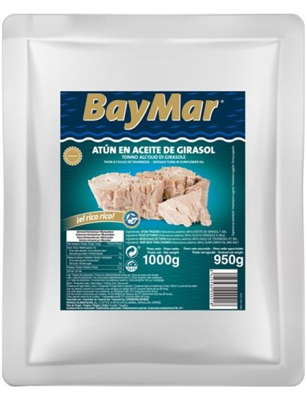 Цей продукт поставляється в пакеті вагою 1000 г, що робить його зручним варіантом для тих, хто шукає велику кількість тунця в соняшниковій олії.