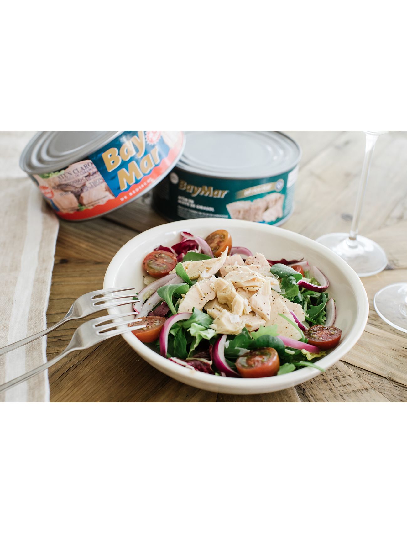 1. У салатах: Ви можете додавати тунець Baymar в соняшниковій олії до ваших салатів, щоб додати смаку та текстури. Просто злийте олію і подрібніть тунець, перш ніж поміщати його з улюбленими овочами. Ви також можете поєднувати його з іншими інгредієнтами, такими як помідори, цибуля, оливки та яйце, зварене круто, щоб створити більш повноцінний салат.