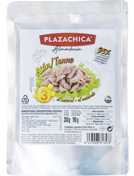 Вага тунця у власному соці: 200 г. Вага тунця суха: 190 г.