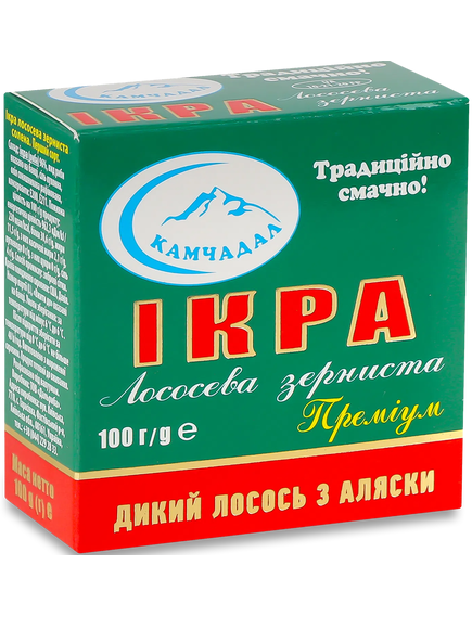 Склад: ікра (риба) 96%, вид риби вказано на банці, сіль кухонна, олія соняшникова рафінована, консерванти: Е200, Е211.