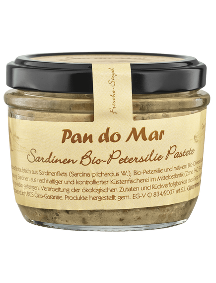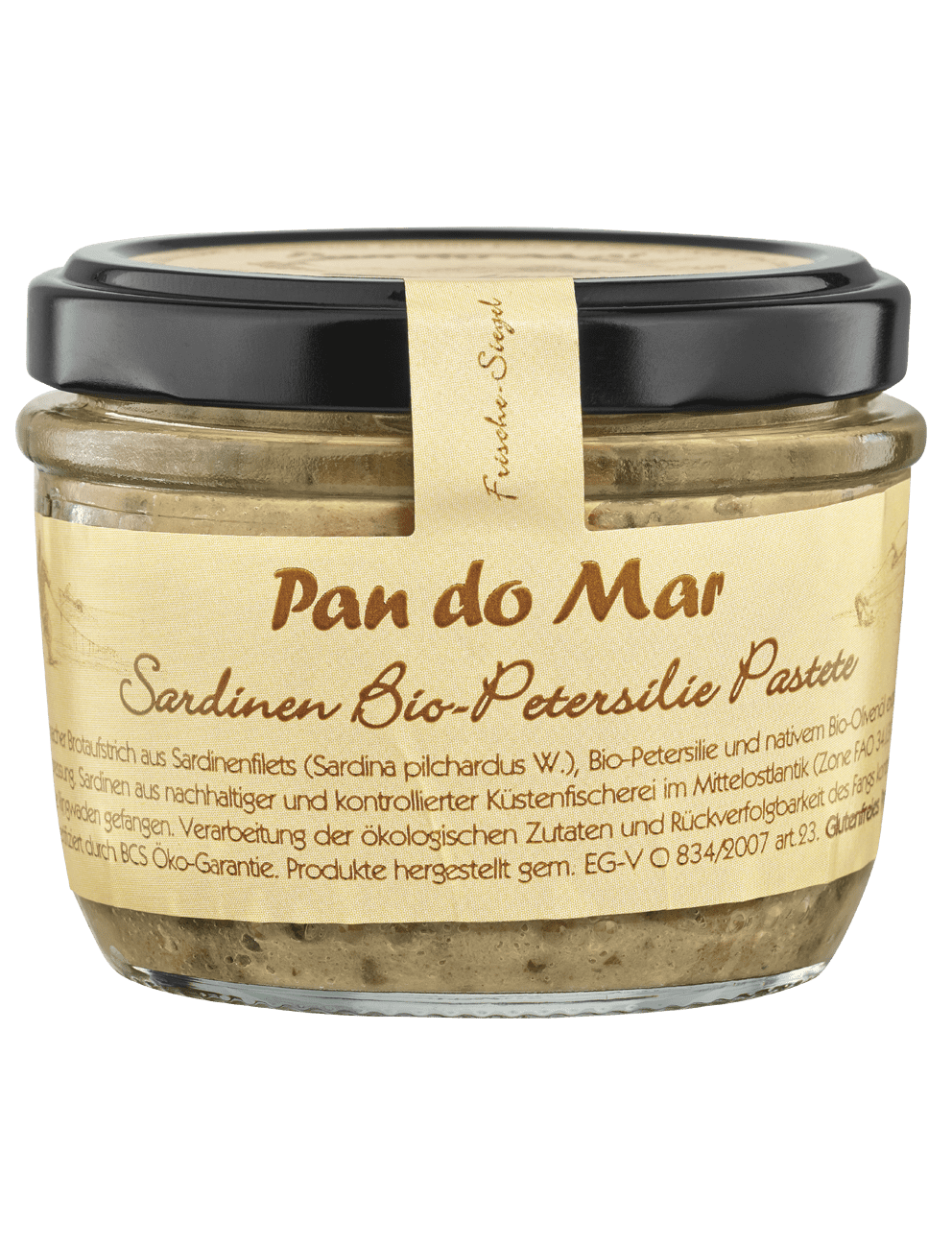 Склад: філе атлантичної сардини (52%), петрушка (22%)*, Olivenöl extra nativ (12%)*, картопля (9%)*, цибуля*, часник*, пфеффер*, кукурудзяний крохмаль*, морська сіль. (*: з органічного сільського господарства).