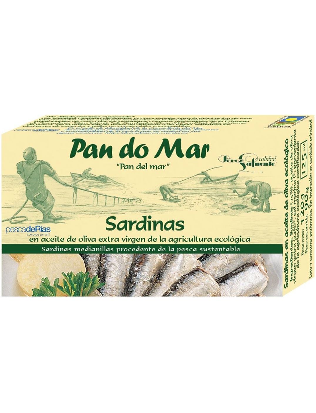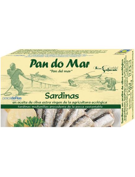 Сардини зі стійких і контрольованих рибальських запасів виловлюються традиційним прибережним промислом у північно-східній Атлантиці, очищаються вручну та консервуються в оливковій олії першого віджиму з сертифікованого іспанського органічного сільського господарства.