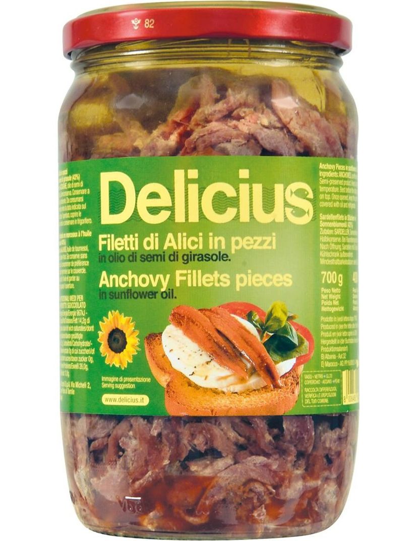 Досконалість анчоусів, оброблених за італійськими традиціями, також у варіанті з соняшниковою олією. Жирна риба відмінної якості, просолена і ідеально дозріла протягом багатьох місяців. Весь досвід і мудра практика цілих поколінь втілені в таку просту і смачну їжу. Продукт найвищої якості, смачна насолода. Шукайте зелену етикетку, і ви будете здивовані їх смаком.