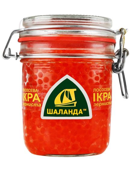Склад: ікра горбуші солена 99.7%, олія соняшникова рафінована, консерванти: Е200, Е211.