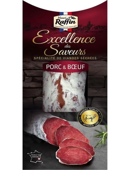 Склад: свинина (139 г використовується для виготовлення 100 г готового продукту), яловичина (35 г використовується для виготовлення 100 г готового продукту) лактоза, сіль, сахароза, декстроза, спеції, прянощі, консерванти (нітрит натрію, нітрит калію), ферменти. Оболонка з волокон тваринного походження.