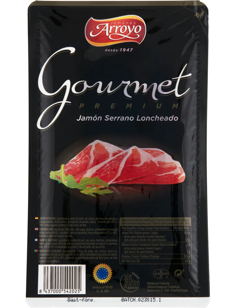 Мінімальна кількість для "Arroyo Gourmet Хамон Серрано Лончеадо нарізаний слайсами 50 г" є 5.