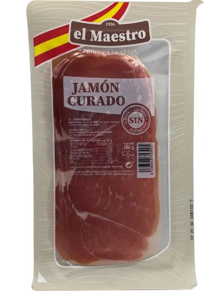 Мінімальна кількість для "El Maestro Хамон Курадо нарізаний слайсами 100 г" є 5.