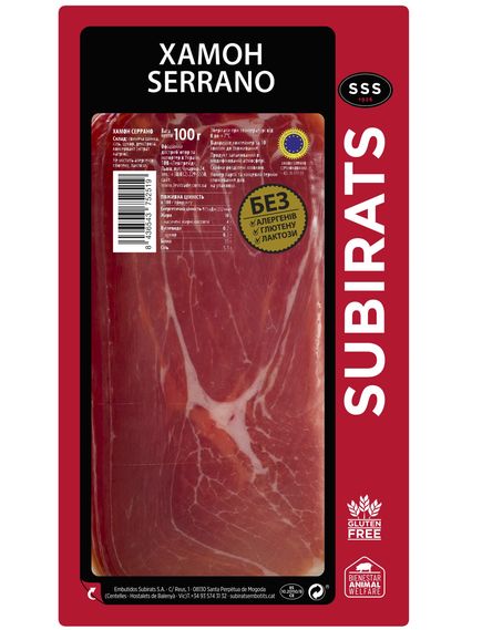 Мінімальна кількість для "Subirats Хамон Серрано нарізаний слайсами 100 г" є 5.