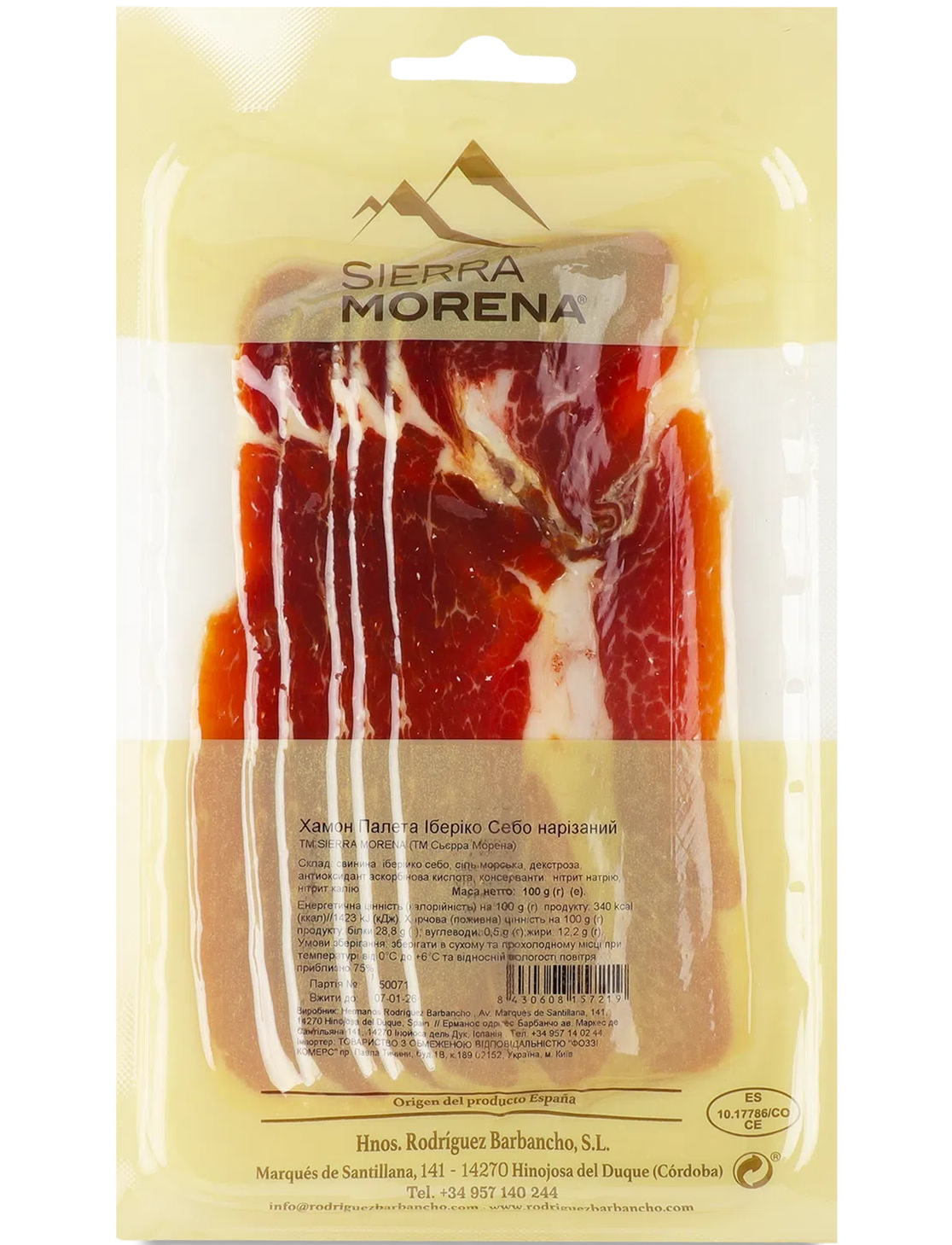 Sierra Morena Хамон Іберіко Себо Палетта нарізаний 100 г