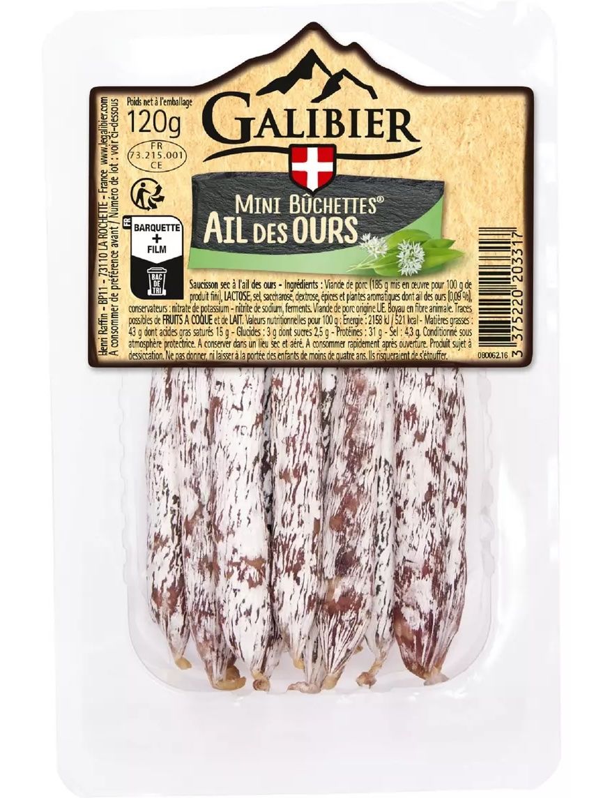 Склад: свинина (185 г на 100 г готового продукту), ЛАКТОЗА, сіль, сахароза, декстроза, прянощі та ароматичні рослини, в тому числі черемша 0,1%, консерванти: нітрат калію - нітрит натрію, ферменти. Оболонка із тваринного волокна.