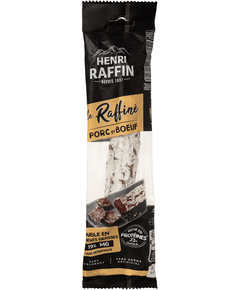 Склад: свинина (193 г на 100 г готового продукту), сир Бофор: МОЛОКО - сіль - сичужний фермент - молочнокислі ферменти (7 г на 100 г готового продукту), ЛАКТОЗА, сіль, сахароза, декстроза, прянощі та ароматичні рослини, натуральні ароматизатори, консерванти: нітрат калію - нітрит натрію,...