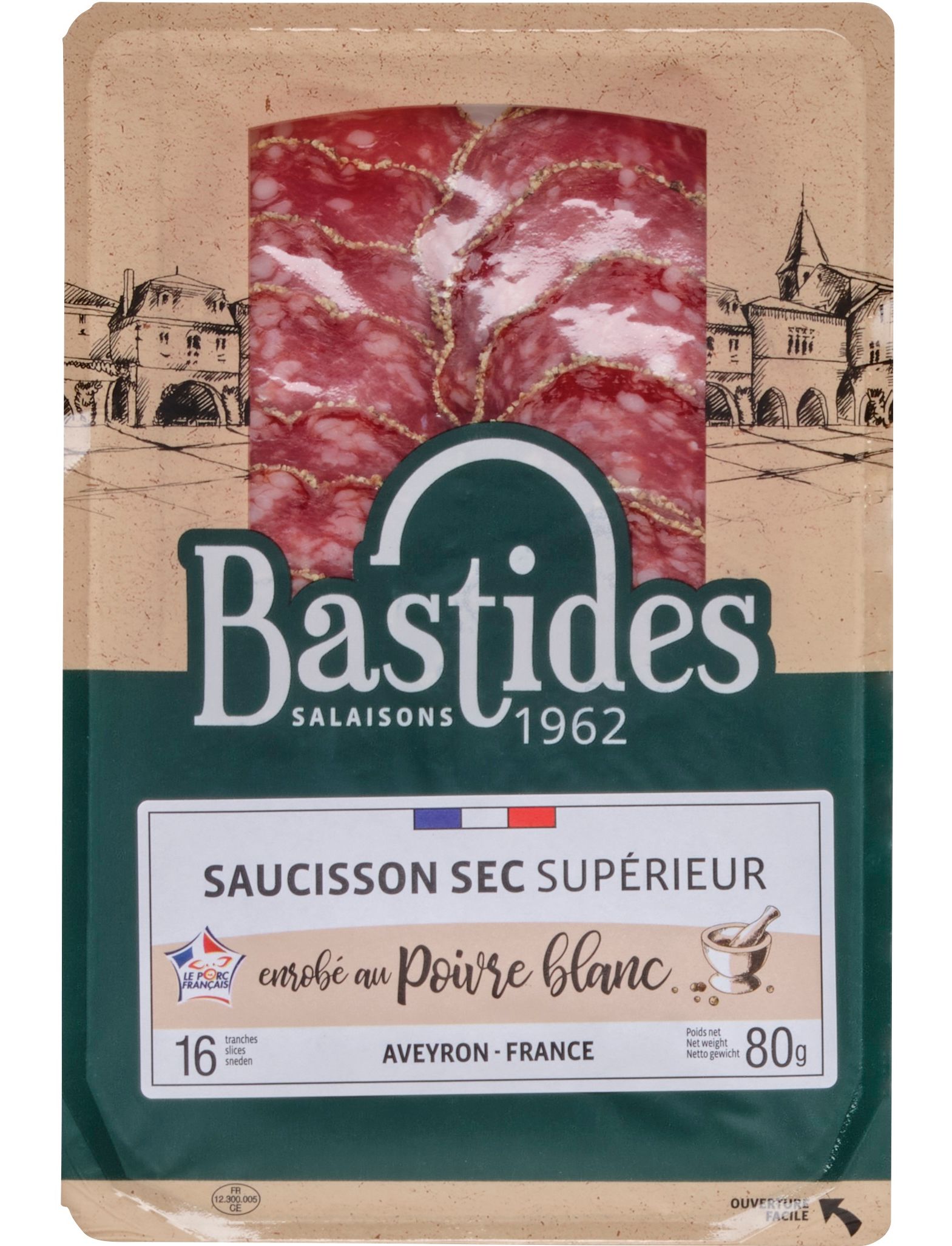 Склад: свинина, сіль харчова, сироп глюкози, лактоза, спеції, декстроза, консервант: нітрат калію, агент молочного бродіння. Оболонка: перець білий 2%, гелеутворювач, консерванти: Е202, Е235.