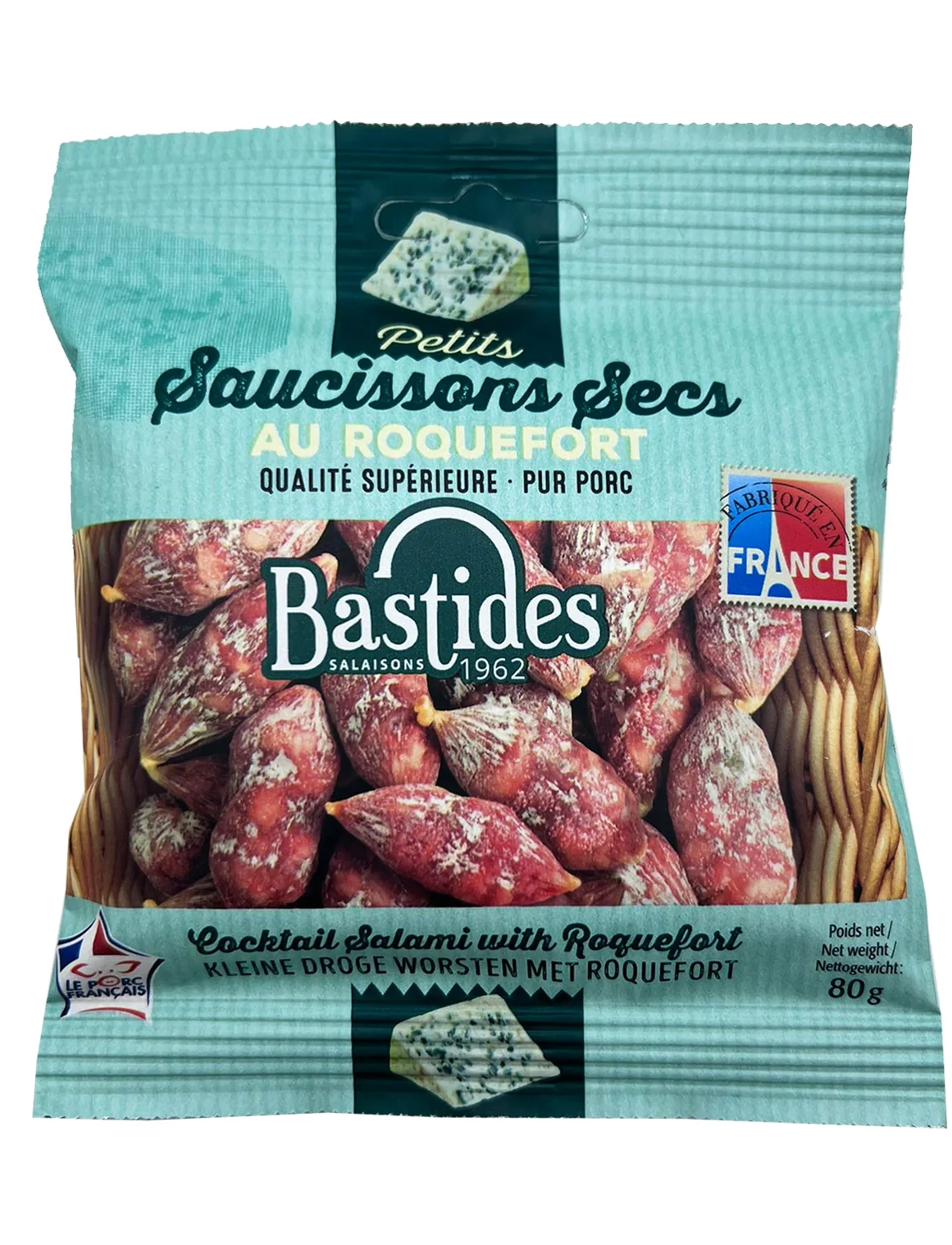 Поєднання двох чудових продуктів; Сир Рокфор і суха ковбаса. Цей продукт смачний і повний характеру! Насолоджуйтесь цим як частиною простого обіду зі скибочкою свіжого хліба та келихом червоного вина.