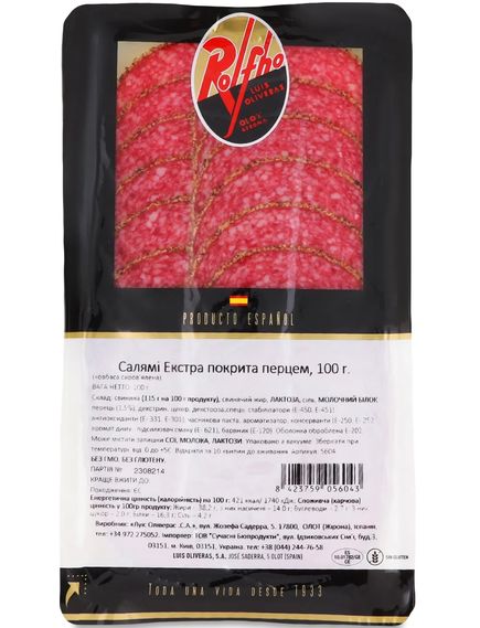 Rolfho Ковбаса Салямі Екстра покрита перцем нарізана 100 г