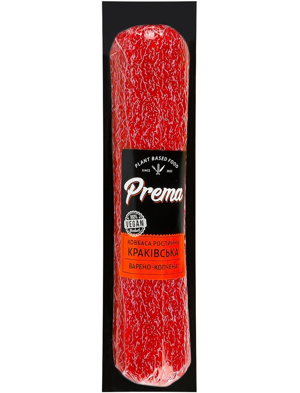 Склад: сейтан (вода, пшеничний білок), кокосова олія, соєвий білок (без ГМО), модифікований кукурудзяний крохмаль (без ГМО), пшенична клітковина, суміш спецій (чорний перець, гірчиця, коріандр, селера), сіль, барвник натуральний (ферментований рис). Натуральне копчення на вільховій трісці.