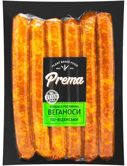 Склад: сейтан (вода, пшеничний білок), кокосова олія, соєвий білок (без ГМО), модифікований кукурудзяний крохмаль (без ГМО), пшенична клітковина, натуральні спеції (коріандр, тмин, імбир), каррагінан (червоні морські водорості), сіль, барвник натуральний (ферментований рис).