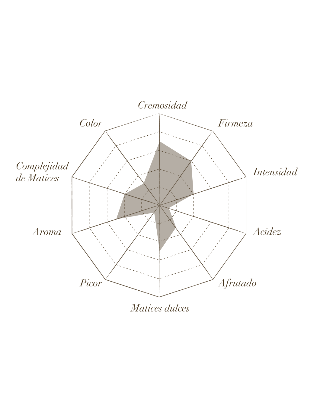 - Смак. Солодкі смаки виділяються тонами сухофруктів і кориці; і молочні спогади. Вершкові ноти відновлюються зі спогадами про козу (первинні аромати).
