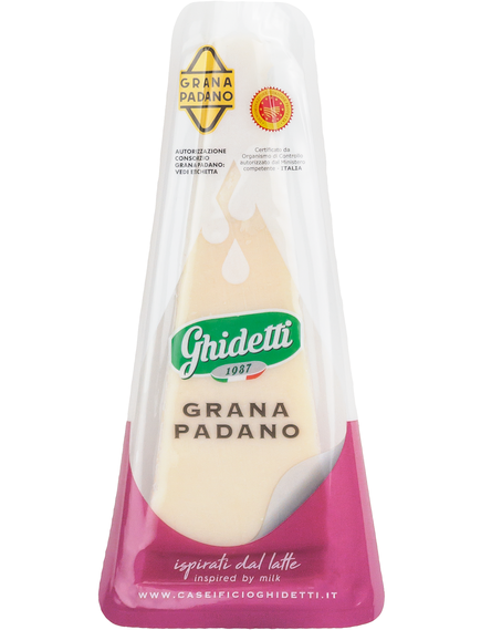 Grana Padano DOP є продуктом місця, де він народжується і де він старіє: величезні рівнинні простори, де молоко є серйозною річчю, а робота передається від батька до сина. Умілі руки, давні традиції, жести, що повторюються протягом днів, місяців і років, роблять Grana Padano DOP витвором мистецтва, створеним часом і турботою. Кожна форма різна й однакова, ідеальний результат релігійно шанованого процесу. Сильний, але не гострий смак поєднується зі смаком молока для сиру, бренд якого розглядає як початок великої пригоди, на столах у всьому світі.