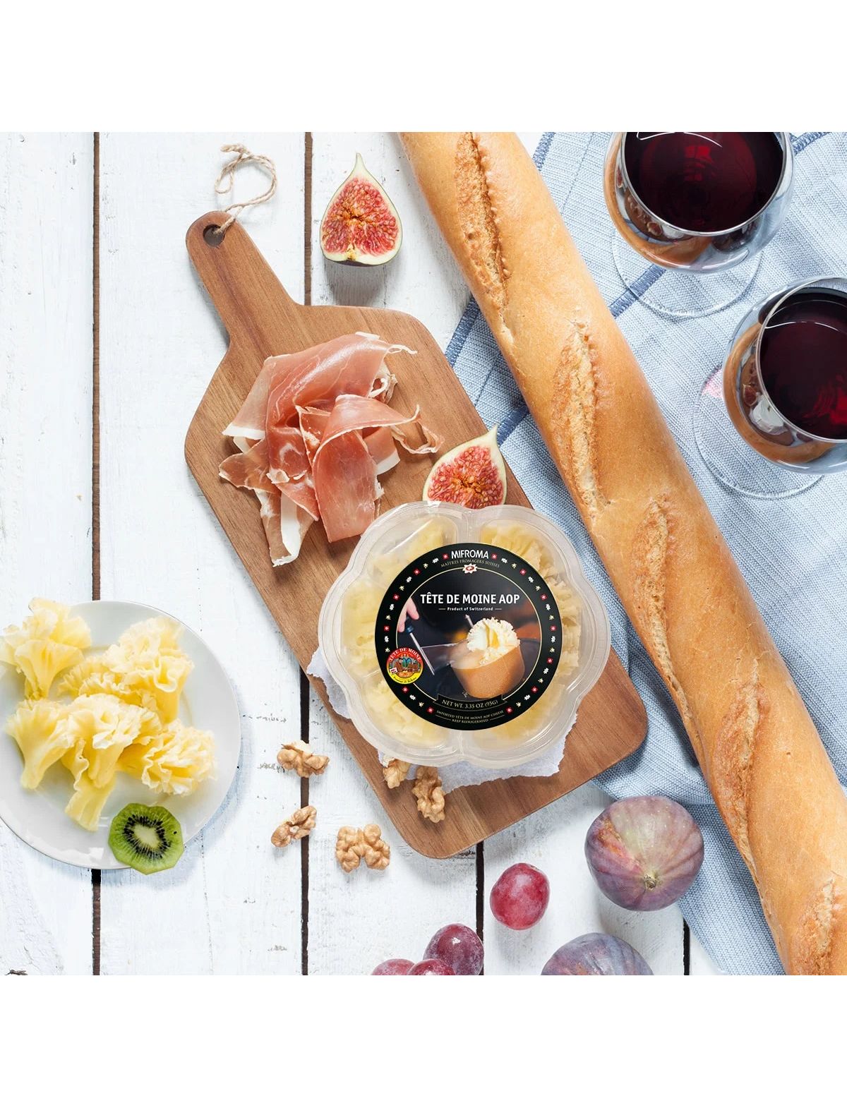 Tête de Moine AOP (буквально «голова ченця») — це спеціальний сир, історія якого налічує 800 років. Вперше його винайшли ченці абатства Белле в Швейцарії. Унікальний на смак сир із унікальним стилем подачі, Tête de Moine AOP зазвичай нарізають на розетки за допомогою спеціального леза для скручування сиру або нарізають невеликими пікантними шматочками.