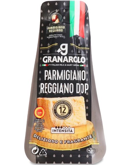 Granarolo Parmigiano Reggiano DOP — типовий італійський сир, вироблений у повній відповідності до специфікацій DOP Protection Consortium.Виробляється лише з коров’ячого молока з регіону, що включає провінції Парма, Реджо-Емілія, Модена, Болонья (ліворуч). річки Рено) і Мантуї (праворуч від річки По). Упаковка тертого та порційного сиру Парміджано Реджано повинна здійснюватися в межах регіону походження, щоб гарантувати якість, відстежуваність та контроль. Це справжня та поживна їжа з чудовим співвідношенням між енергетичною цінністю, якістю та кількістю поживних речовин, що містяться. Він також багатий кальцієм і фосфором, необхідними для підтримки кісток і зубів.