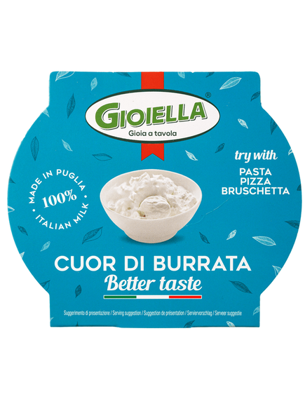 Джойелла страчателла – це вибух свіжості та легкості: виготовлена з тертої моцарели, змішаної зі свіжими вершками, вона має неперевершено кремову текстуру та збалансований смак. Спробуйте її в класичному варіанті, нарізаному вручну, або ж насолодіться копченим та трюфельним варіантами для більш насиченого смаку.