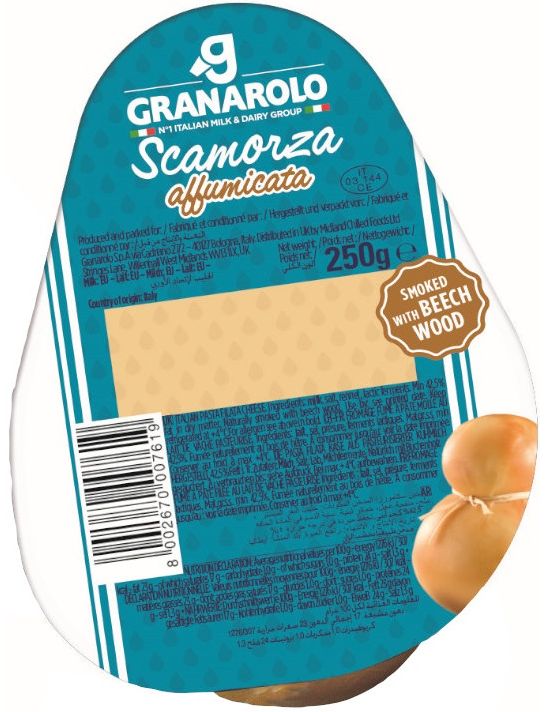 Копчена скаморца — копчений стручковий сир. Відкрийте для себе ніжний смак копченої Скаморци з Гранароло, ідеально підходить для збагачення смаку ваших перших страв чи салатів, для вишуканого аперитиву чи просто для приготування на грилі. Без ароматів, тому що натурально копчений буковими дровами.