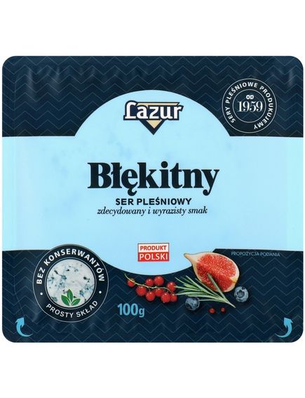 Сир Lazur Błękitny має крихку та кремову м’якоть, глибоко врослу пліснявою, злегка солонуватим смаком, залишає традиційну, ароматну, гостру та сильну нотку з ніжним, тривалим грибним присмаком, характерним для цього виду сиру. Він яскраво підкреслює смак овочевих і м'ясних страв.