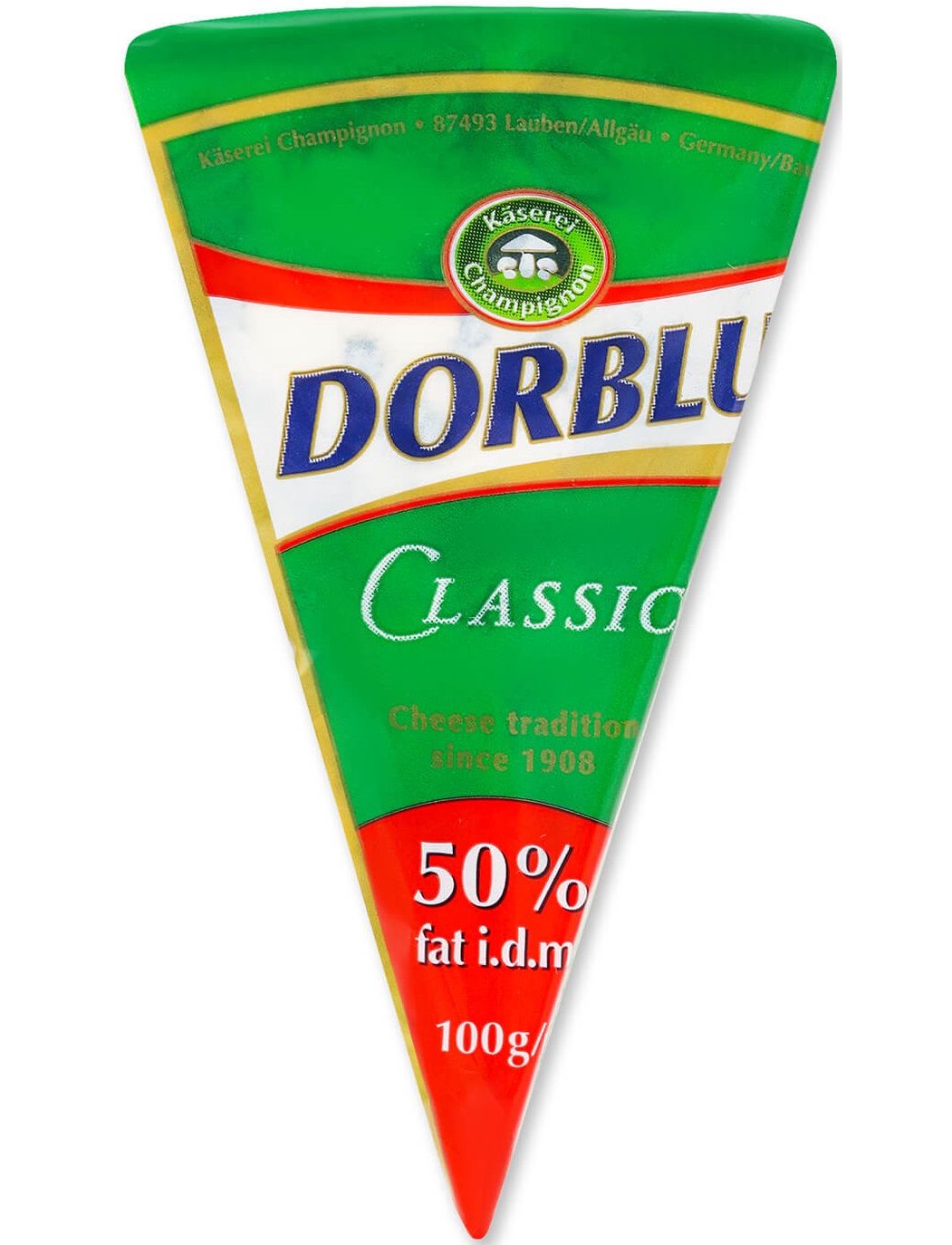 Сир Kaserei Сhampignon Dorblu Classic 50% 100г. Склад: пастеризоване молоко, сіль, мікробіологічний сичужний фермент, мезофільні культури молочнокислих бактерій, культури для визрівання.