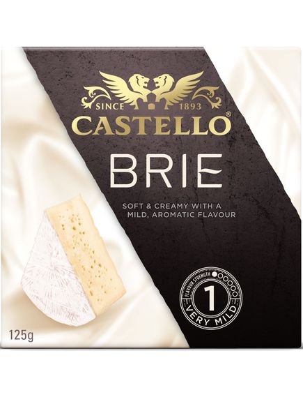 Сир Castello Brie 50% 125г. Склад: молоко пастеризоване коров`яче, сіль, закваска молочнокислих культур, фермент сичужний мікробіальний, пліснява культура (Penicillium candidium), стабілізатор хлорид кальція.